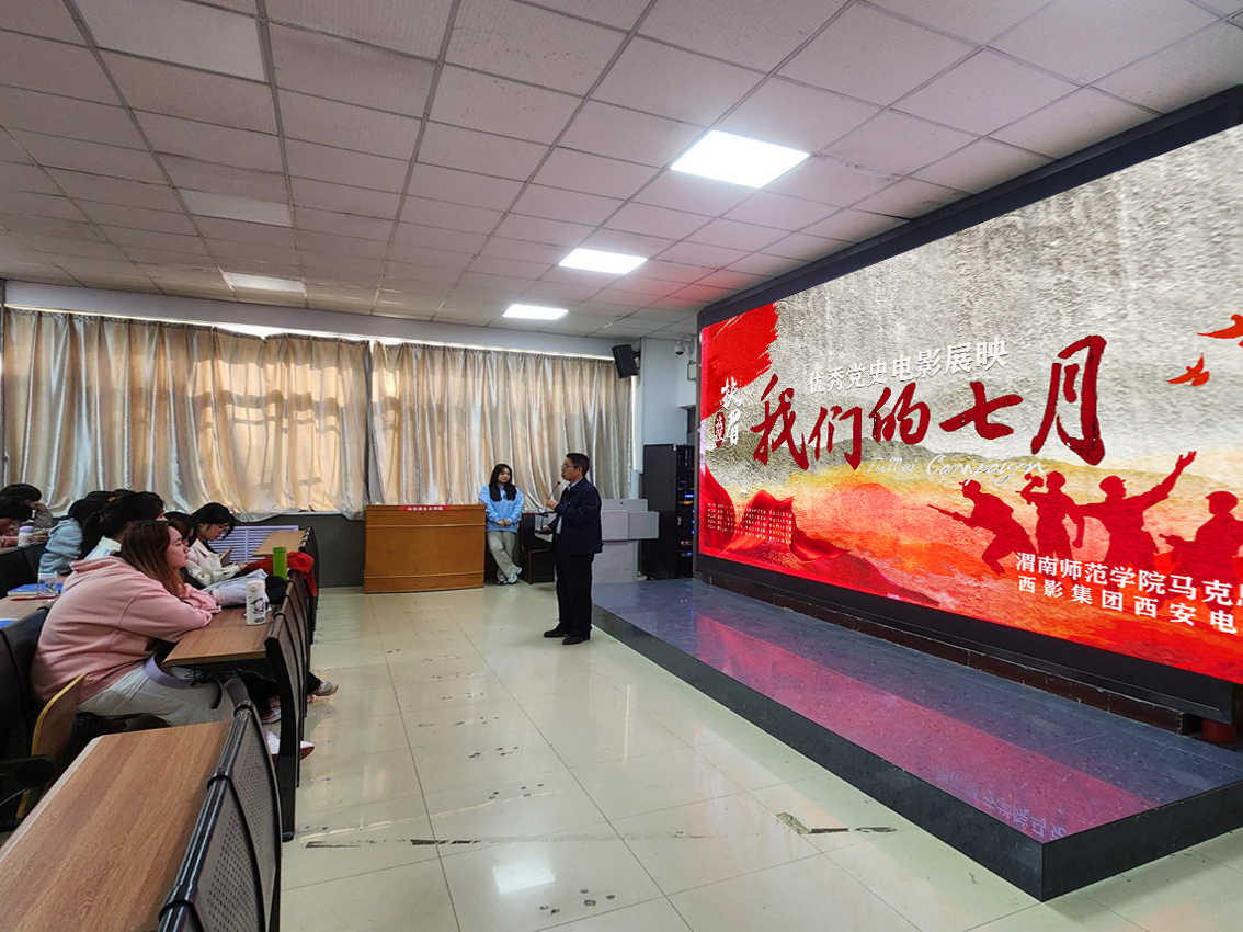 4月8日至14日,公司举办了电影《我们的七月》展映周活动,在学院思政3D虚拟仿真体验中心放映该片七场。包括党员、党员发展对象、入党积极分子在内的600名师生到场观看,占全院师生总数的92%。