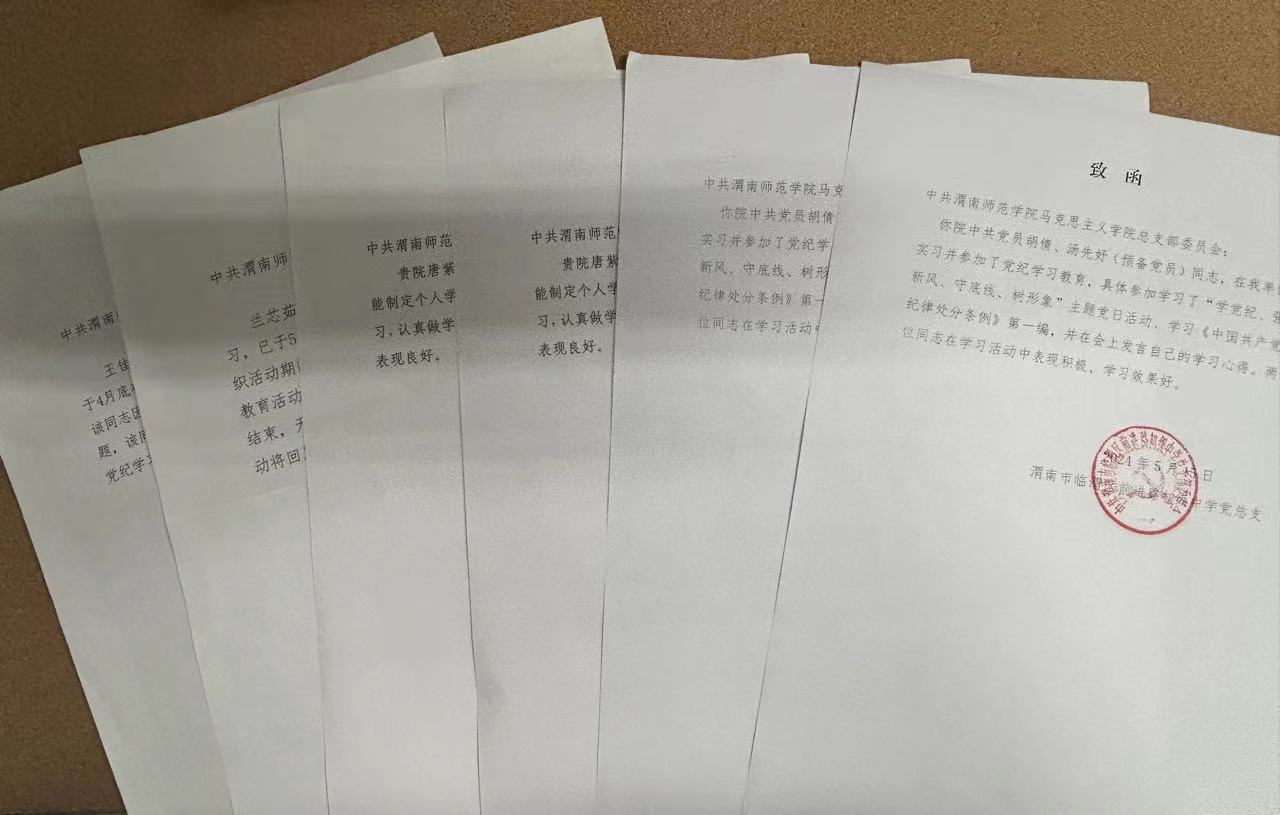 日前,学院在外实习的部分员工党员结束实习返校,均带回了实习单位党组织关于该实习党员就地参加党纪学习教育情况的回函。回函、流动党员提供的照片等显示,流动党员在流入地党组织参加学习教育情况总体良好。