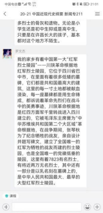 通过本节课程的学习,同学们认识到了学习《中国近现代史纲要》课程的重要性;课堂上同学们积极的发言和探讨,与辛老师探讨的过程中也拉近了师生之间的距离;最后陕西正处于疫情防范的关键时期,辛老师对同学们的鼓励,对疫情防控的解释,也平抚了同学们不安的心,让同学们对于共渡难关坚定了信心。(人文学院汉专升本211班杨家合、新闻专升本211班徐荣欢)