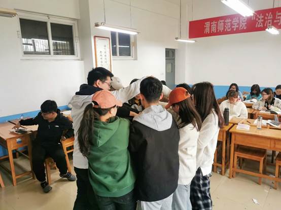 本次活动由杨颜荣老师用电脑随机筛选的方式,随机抽取了十位同学,由这十位同学进行“解手环”的游戏,游戏规则为十位同学围成一个圈,右手握住对面同学的右手,左手握住除对面同学外任意一个同学的左手,这样十位同学就组成了一个看似复杂的手环,游戏的最终结果是,解开手环,恢复到手拉手一个圈的状态。这十位同学团结努力、各方协调,最终成功的解开了手环。本次活动不仅极大地调动了同学们的课堂积极性,让同学们更多更好地参与到教学活动之中,更为重要的是我们深刻地体会到了“随机抽样”方法的随机性,也对“随机抽样”有了形象的印象,这可能在我们以后的学习工作中,只要提到“随机抽样”我们就会想起这个游戏的场景,这种教学效果非常的好。