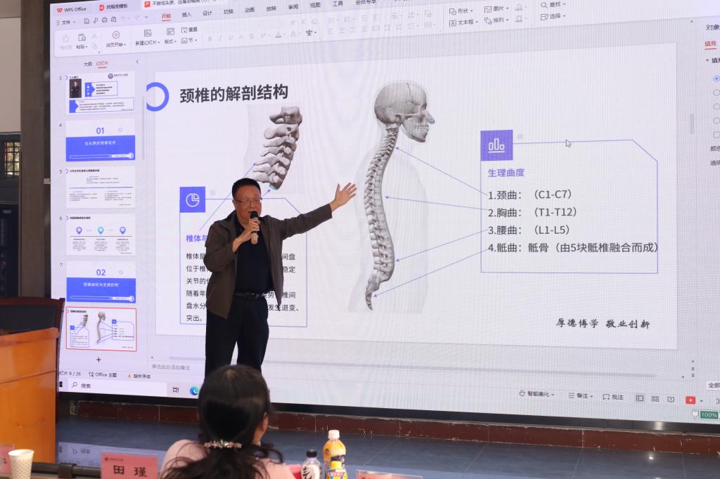 骨科主任医师、科主任雷广宇医生以《不做低头族,远离颈椎病》为题,讲解了人体颈椎结构、脊柱结构、员工常见颈椎病及其发病原因,介绍了颈椎病的日常预防方法、椎间盘病的类型及其治疗不同治疗方式,等等。