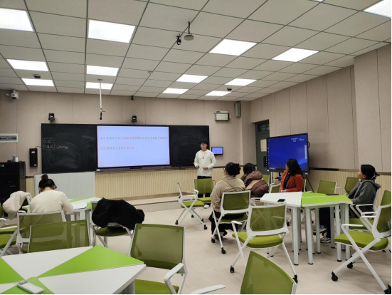 在磨课过程中,两位同学分别讲授了自己的参赛内容,并与指导教师就各自选题、思路、内容以及表现形式等进行了讨论,申弋老师就大赛的评审标准、核心素养、教学内容与形式、创新点、语言表达、教师形态等方面进行了细致点评,并给出了具体的修改意见。