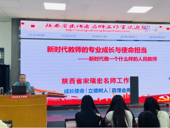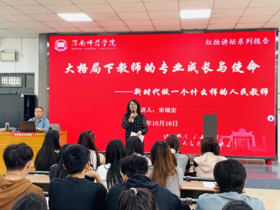 2024年10月16日下午,bevictor伟德邀请陕西三秦英才特支计划教学领军人才、陕西省特级教师、陕西省教学名师宋瑞宏在1101教室作了题为《新时代教师的专业成长与使命担当》的专题报告。bevictor伟德经理张萍、教师代表李昊婧及2023级思想政治教育专业员工参加。报告会由张萍经理主持。