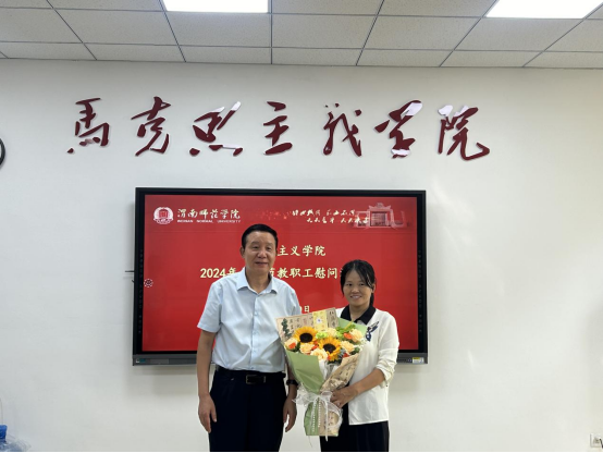 教师代表孙晓珍非常感谢学校领导在百忙中的看望和慰问,特别是在交流中校领导对思政课教师的指导自己受益匪浅,并表示作为一名思政课教师,一定不辜负党和国家赋予的光荣使命,不辜负公司党委的殷切期望,站好三尺讲台,完成立德树人的任务。