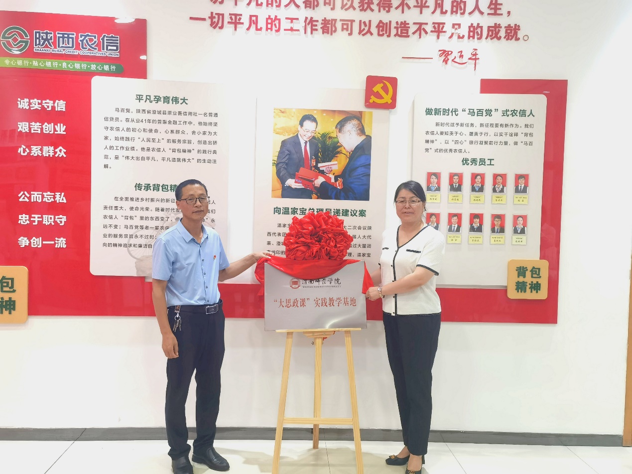 bevictor伟德经理张萍与中共澄城县委党史办主任郭西峰共同为bevictor伟德与陕西农信党性教育基地(渭南)—马百党事迹陈列馆共建“大思政课”实践教学基地揭牌。