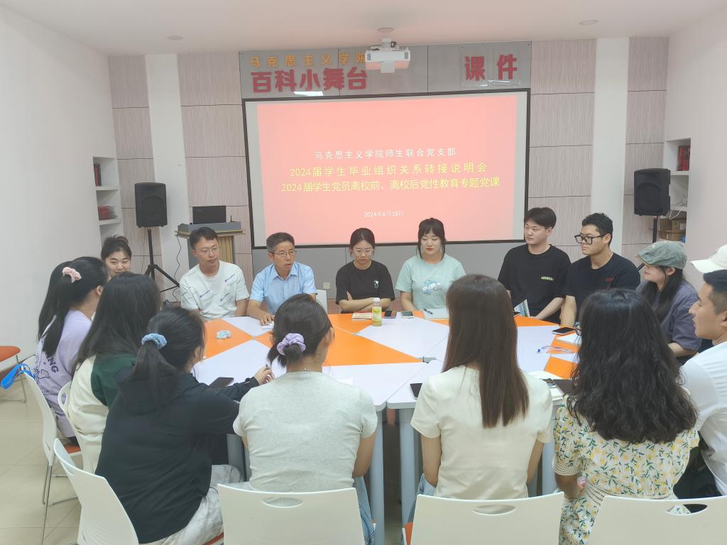 6月16日,师生联合党支部书记赵国峰以《我是党员,我来啦——说给毕业生党员的话》为题,为2024届员工党员讲了最后一堂党课,评价了2024届员工党员的思想状况、日常行为表现,再次强调了党员的义务,重温了入党誓词,回顾了党的员工工作,阐述了老员工党员对于党风建设、社会风气转变和党的事业发展的重要性,希望要他们毕业后严格遵守转入党组织和所在单位或居住地规章制度,在就读、就业单位或居住地以实际行动体现党员的先进性,无愧于党员身份。