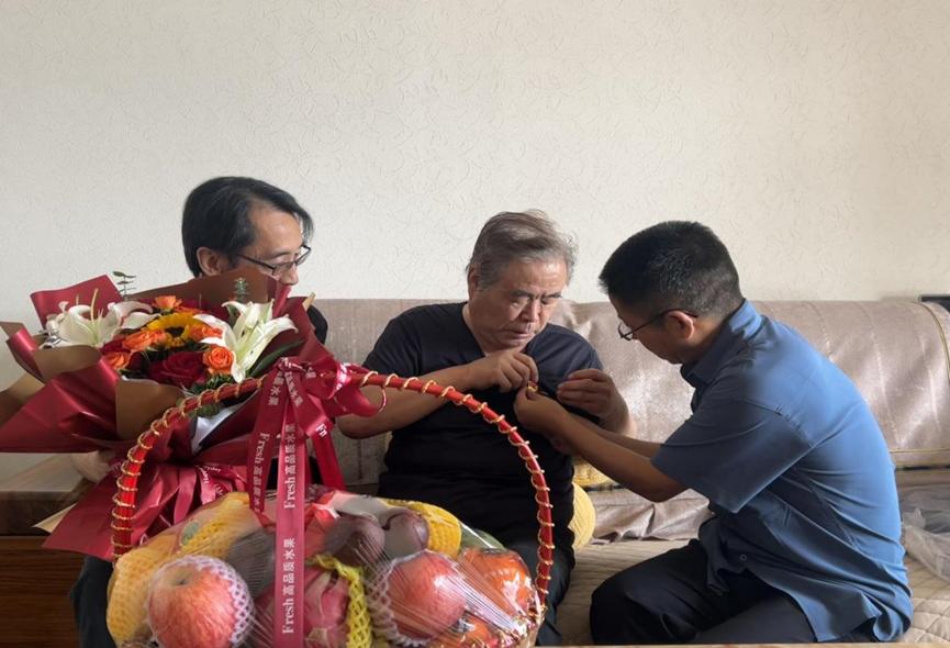 6月28日,学院总支书记、部分总支委员前往学院退休思政课教师、老党员、家庭较为困难、身体状况不佳的皇甫世杰老师家中慰问。总支为皇甫世杰同志佩戴了党员胸章,带去了表达敬意的鲜花和精美的果篮,听取了他对学院工作的建议,了解了其家庭生活、子女工作婚姻等方面的情况。
