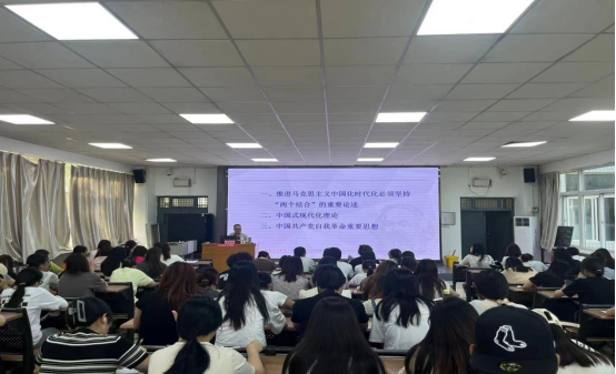 6月25日上午,在1101教室,bevictor伟德邀请陕西师范大学bevictor伟德二级教授、博士生导师阎树群教授作题为《习近平新时代中国特色社会主义思想的几个原创性贡献》的报告。公司党总支副书记肖飞、学院办公室主任孙宁、教师代表与思想政治教育专业2022级员工共同参加。报告会由思想政治教育专业负责人周菊芳主持。