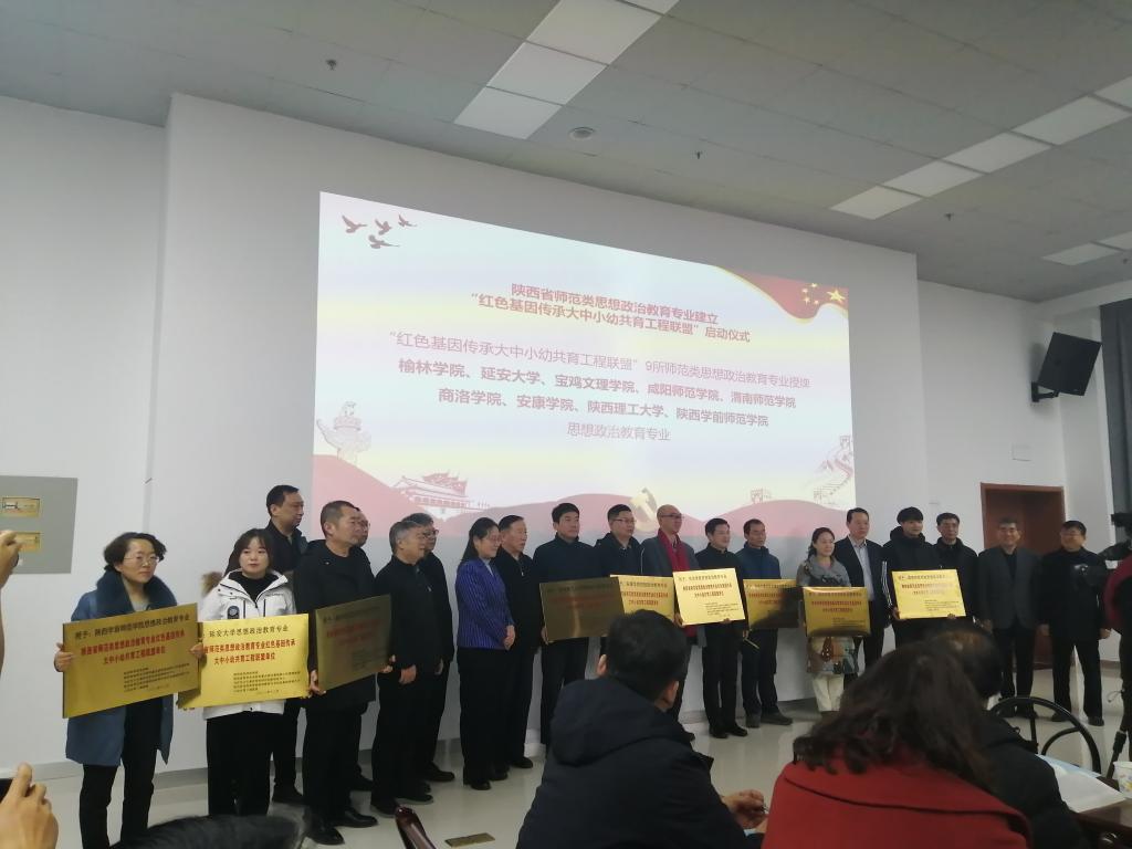 为协同进行红色基因传承教育,会议主办单位陕西学前师范学院省哲学社会科学重点研究基地核心价值观培育与红色文化基因传承协同创新研究中心,联合榆林学院、延安大学、宝鸡文理学院、咸阳师范学院、伟德bevictor官方网站、商洛学院、安康学院、陕西理工大学、陕西学前师范学院等高校的师范类思想政治教育专业,建立“红色基因传承大中小幼共育工程联盟”,发扬团队培养培训优势,同全省中小学和幼儿园一起,建设“陕西红色基因传承大中小幼共育工程”。陕西省政协副主席王二虎等领导为共育工程单位授牌。