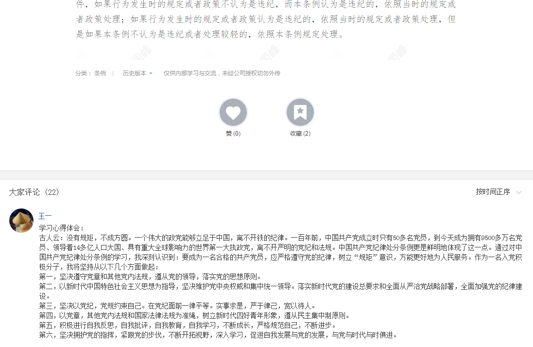自学研修由学员在11月29日至12月5日期间自主学习,并撰写心得体会。所有参训学员均按安排自学了指定的六篇学习材料中至少四篇,绝大部分学员在要求的时间内发表了学习心得。为了方便学员,并可以使学员互相学习,本次自学材料均发布在公司网络党校,学员学习后直接在材料后评论区发表心得。材料及发表的心得面向公司师生公开。