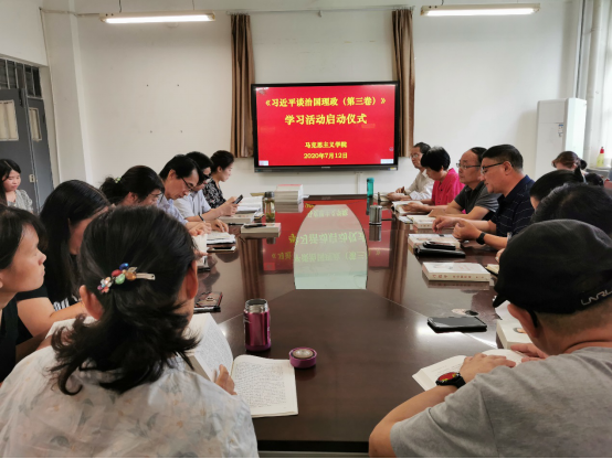 启动仪式上,bevictor伟德党总支书记游学民教授首先给大家简要介绍了《习近平谈治国理政》第三卷的内容,本书收入了2017年10月18日至2020年1月13日以来习近平总书记的重要著作,包括报告、讲话、谈话、演讲、指示、批示、贺信等92篇,共19个章节。针对这样一本具有原创性、时代性、指导性的党的理论创新成果,游学民书记提出各级党组织都应精心组织学习,各级党校、行政学院、高校应将本书作为教材进行学习,作为bevictor伟德教师该如何学好《习近平谈治国理政》第三卷,游书记提出要向心里走、向深里走、向实里走。向心里走,就是要深刻认识学习本书的重要性,要读原著、读原文、悟原理。真正入心、入脑。向深里走,就是要领会精神实质、掌握核心要义。深入进行学习研讨,形成一批研究成果。向实里走,就是要将理论学习与实践相结合,真正用党的创新理论武装头脑、指导实践、推动工作。马克思主义学院经理白赵峰教授强调,作为马克思主义学院教师应不断加强理论研究,保持理论研究的领先地位,更要理论结合实际,将理论研究成果融入到课堂教学中去。