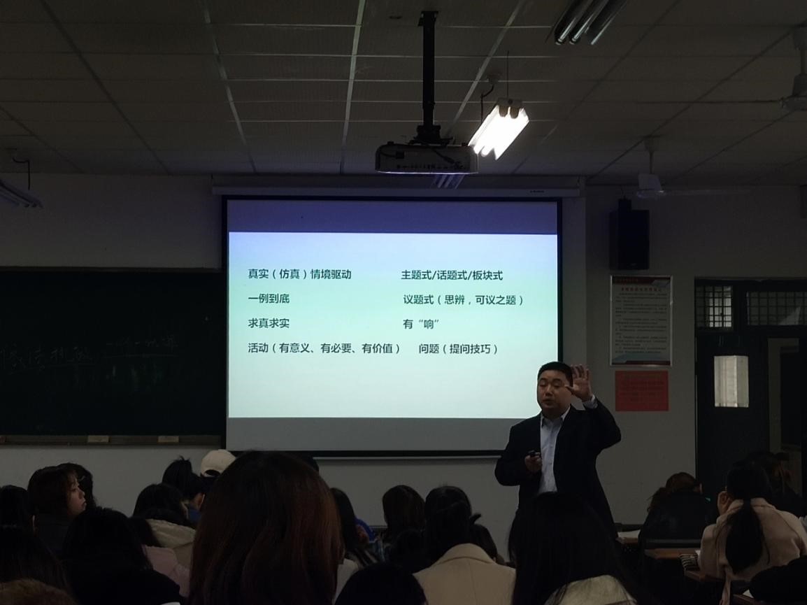 邓正立老师的报告从思政师范生的生涯规划、思政师范生应具备的教学技能、班主任的管理艺术及参与教学竞赛的注意事项、给思政师范生的建议等四个方面进行了阐述,既有宏观的职业规划,又有教学经验的介绍,既有思政师范生应具备的教学技能,又针对教学竞赛提出建议。邓老师的报告视野开阔、思维活跃、理论联系实际,结合现实案例,整个讲座过程中,在场师生全神贯注,认真听讲,气氛活跃,反响强烈,大家普遍感觉受益匪浅。