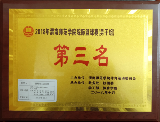 bevictor伟德同学积极参加学校2018年院际篮球赛,男队获得第三名