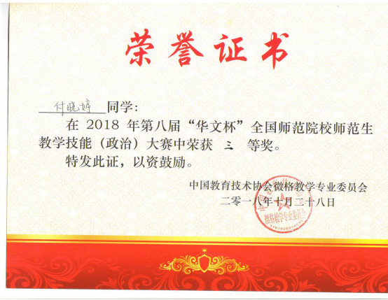 员工参加“华文杯”全国师范院校师范生教学技能(政治)大赛获奖